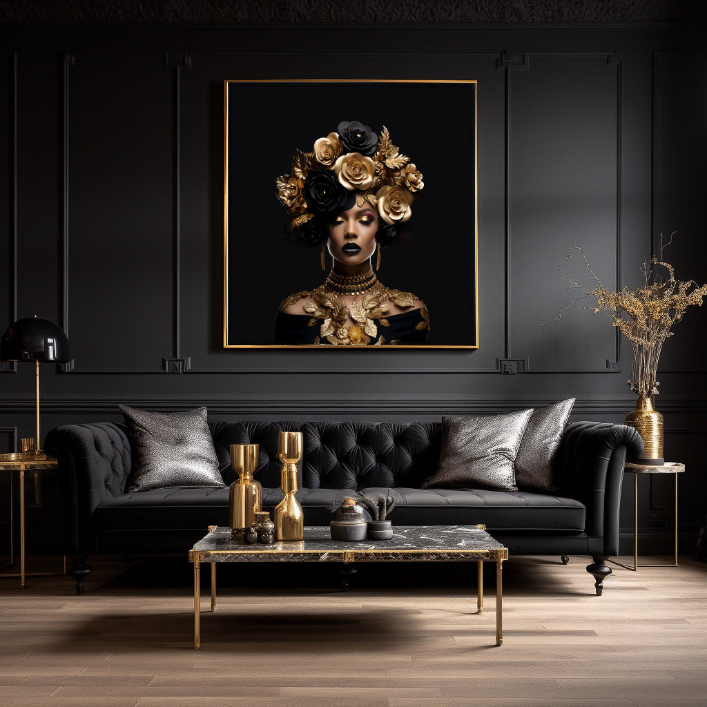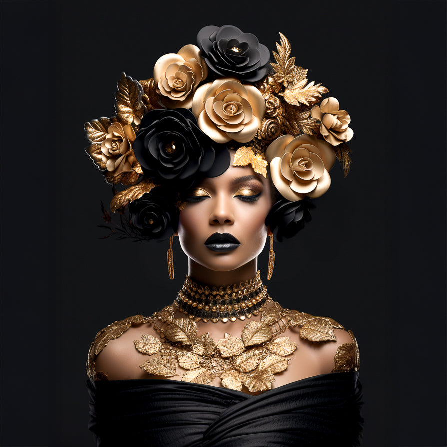 In Gold Finger you see a powerful feminine presence, yet at the same time a deep sense of calm. The warm, natural tones and the golden details give this piece a feeling of elegance and serenity.