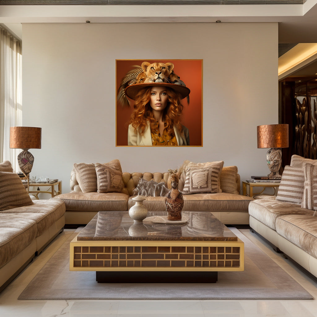 This series of five portraits was born from encounters that deeply moved me, and from the breathtaking beauty I witnessed during our family travels to Kenya. Each piece portrays a powerful woman, combined with striking animal elements such as zebra stripes and majestic lions. The works reflect both the contrast and the harmony that can be found in people and in nature.
